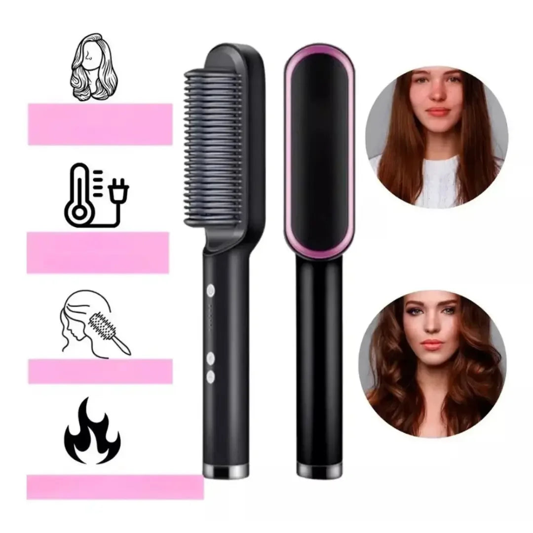 Alisado: Calienta el cepillo, separa un mechón de cabello y pásalo lentamente. Para mejores resultados, repite el proceso varias veces.