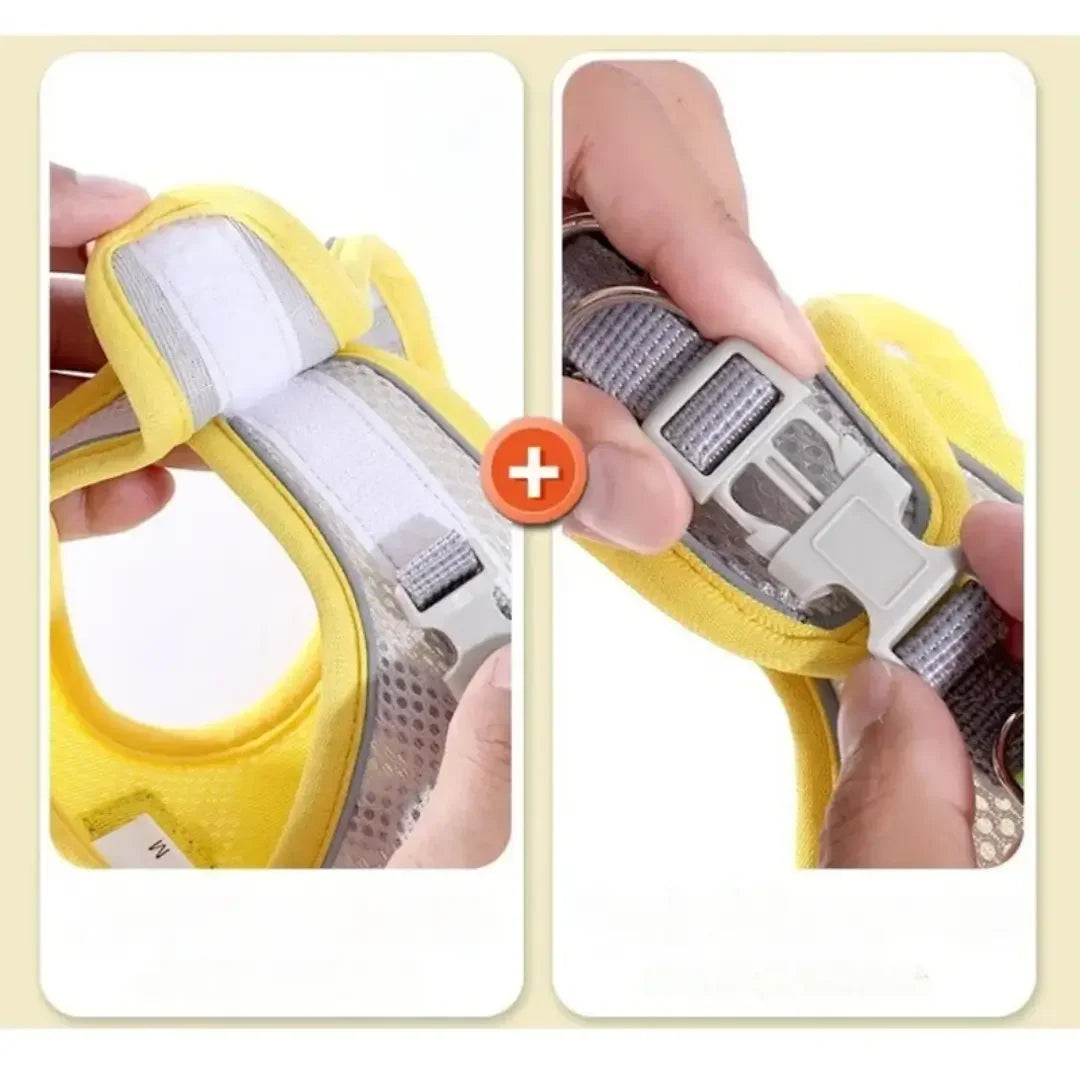 Arnés chaleco de malla suave para gato con correa de nailon, diseño anti-escape, sin tirones y sin asfixia. El arnés mantiene a tu gatito seguro y cómodo. Es ideal para caminar, correr, jugar o hacer senderismo. Este set de arnés y correa permite pasear a tu mascota con seguridad.