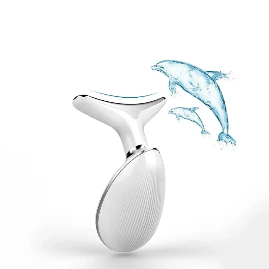 Esta herramienta de cuidado facial tiene un elegante diseño en forma de delfín, compacto y fácil de llevar en una bolsa de maquillaje. Posee una curva de 160 grados que se ajusta perfectamente al rostro y al cuello. Su mango ondulado asegura un agarre antideslizante durante el uso.